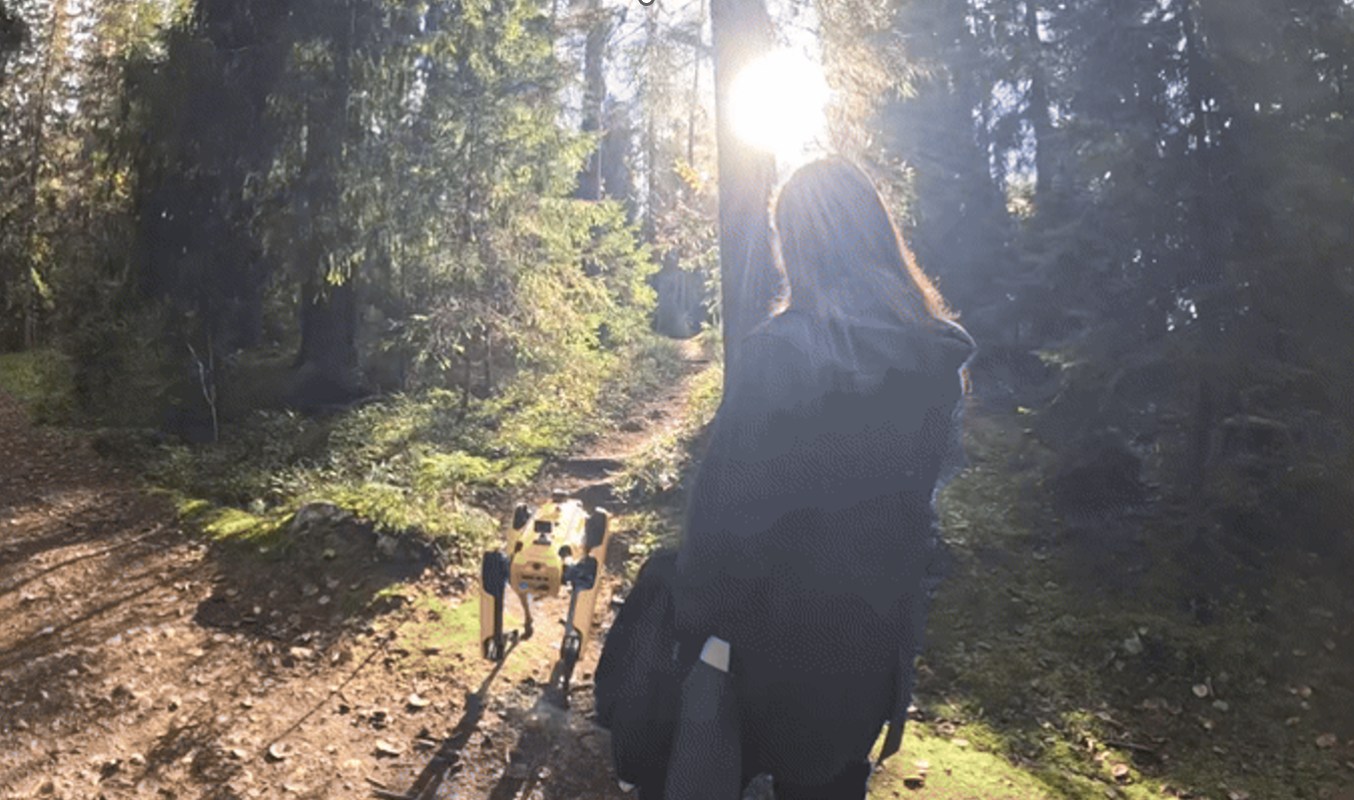Walking is an integral part of daily human lives which also has a great influence on happiness and wellbeing. Walking with a dog companion is one of the most popular forms of recreational walking that has similar benefits. The recent development of mobile zoomorphic robots, especially robot dogs has opened up new opportunities in the landscape of walking with companions. This led us to investigate how such robots can accompany humans in walking, and how the mobility and behavior of robots in a daily-life walking scenario affect humans’ walking experience. We interviewed nine participants who took a 15–20-minute walk with a companion robot around a university campus, to understand how diverse walking behaviors of a companion robot influence their perceived experiences. We have generated four key themes through thematic analysis. They imply that affective relationalities between humans and robots can build intimacy and empathy, whereas personal space and physical proximity need to be thought carefully to ensure interaction comfort and spontaneity. Additionally, the robot influenced people’s self-reflection and social values refraining them from enjoying an unknown experience, while ambiguity in communication led to less confidence and trust.